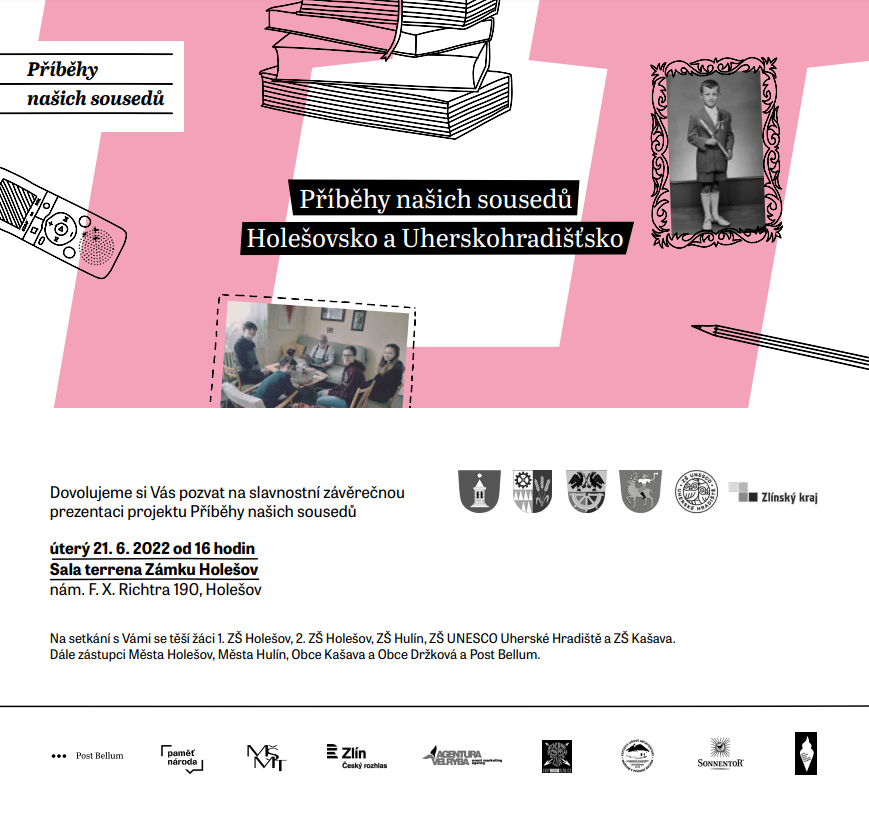 Obec Držková si vás dovoluje pozvat na slavnostní závěrečnou prezentaci projektu Příběhy našich sousedů, do kterého se obec Držková zapojila. Akce se uskuteční v úterý 21. 6. 2022 od 16:00 hodin v Sala terreně zámku v Holešově.