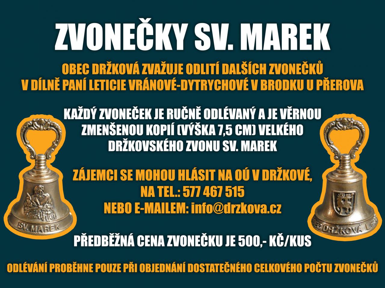 V roce 2018 došlo k odlití nového zvonu sv. Marek pro dřevěnou zvonici v Držkové. Na památku slavnostního žehnání zvonu byly odlity také malé zvonečky (asi 7,5 cm vysoké), věrné zmenšené kopie velkého zvonu. O zvonečky, které si bylo možné dopředu objednat, byl opravdu velký zájem, dokonce proběhlo pro zájemce i druhé odlévání.