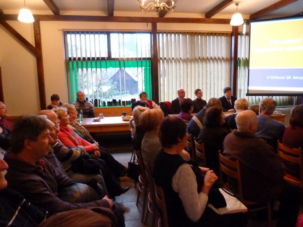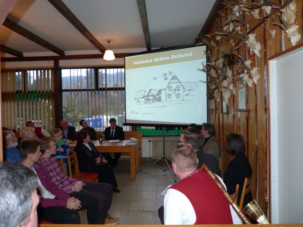 Po přivítání hostů započala beseda o autorce a díle právě s hlavními aktéry – panem dokotrem Karlem Pavlištíkem (čestným občanem Držkové) a s paní doktorkou Alenou Prudkou. Oba dva uznávaní národopisci poutavě odpovídali na zvídavé dotazy moderátorů. Vyprávělo se o době, v níž kniha vznikala, životě a obživě tehdejších občanů, o knize a jejím významu z pohledu odborného i laického. Během besedy se na velké plátno promítaly z připravené prezentace ukázky z knihy, obrázky a fotografie. Na obrázku i živém modelu byl popsán držkovský kroj. Následovala obsáhlá prezentace Lubomíra Marušáka, ve které přiblížil divákům životní osud autorky. Ten by se dal charakterizovat několika uzavřenými kruhy. Narodila se totiž 18. dubna 1897 a zemřela po krátké těžké nemoci přesně v den svých padesátých narozenin tedy 18. dubna 1947. První učitelské místo získala tam, kde poprvé coby malé dítko začala chodit do školy, a to v obecné škole ve Štípě. Po vyprávění o autorce již pak následoval krásný projev pana starosty Ing. Jana Chudárka a ještě dojemnější projev pana doktora Pavlištíka. Ten ve svém monologu poděkoval všem občanům Držkové, že pěstují takovou úctu k tradicím a dějinám obce. Zdůraznil, že s láskou děláme z místa svého bydliště domov! Poté osobně poděkoval a květinou obdaroval maminku pana starosty Františku Chudárkovou a maminku L. Marušáka Dagmar Marušákovou. Protože podle jeho slov jen žena – maminka, babička, správně vychovává své děti a jsou v tom nejlepším smyslu slova hlavou dědiny. Jen ony mají ten největší podíl, na záslužných činech svých dětí. Po tomto slově nezůstalo v sále zřejmě žádné oko suché. Bylo to opravdu dojemné.