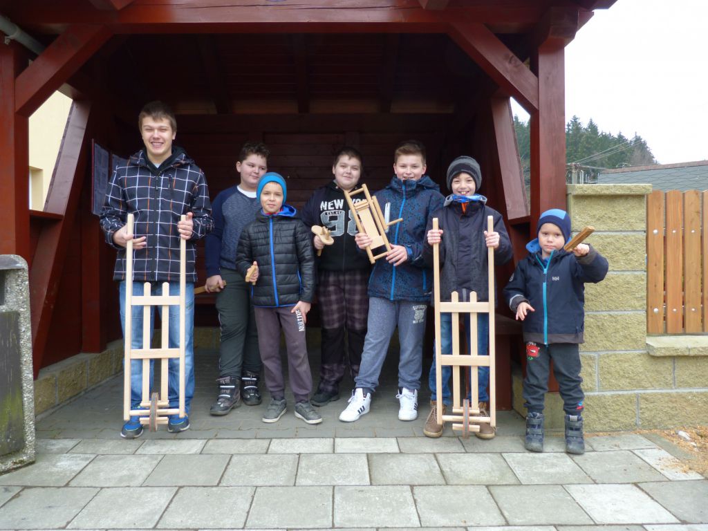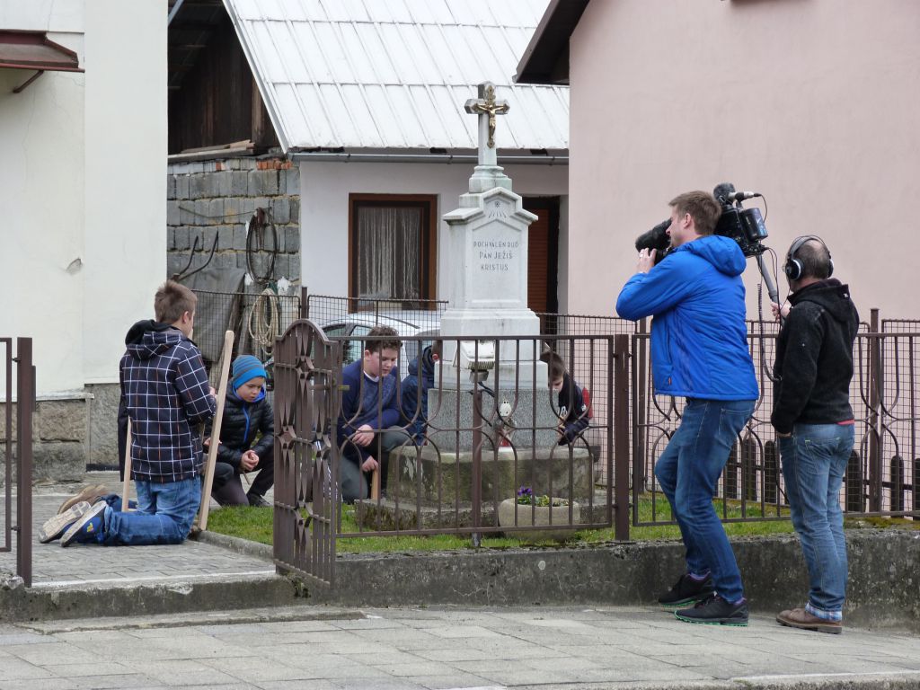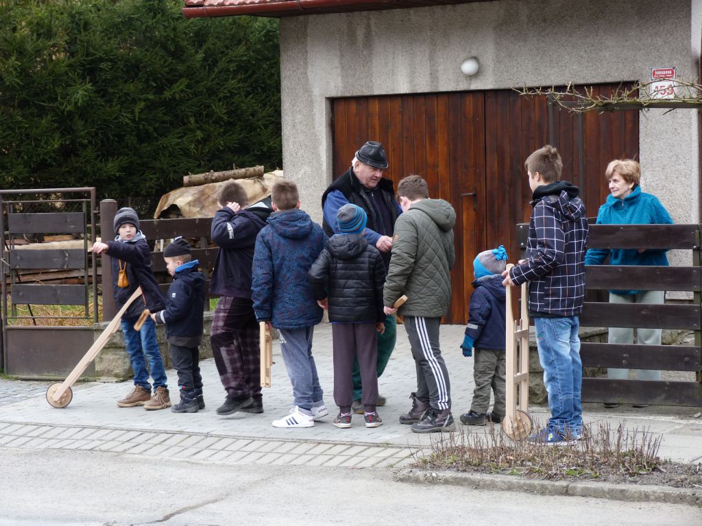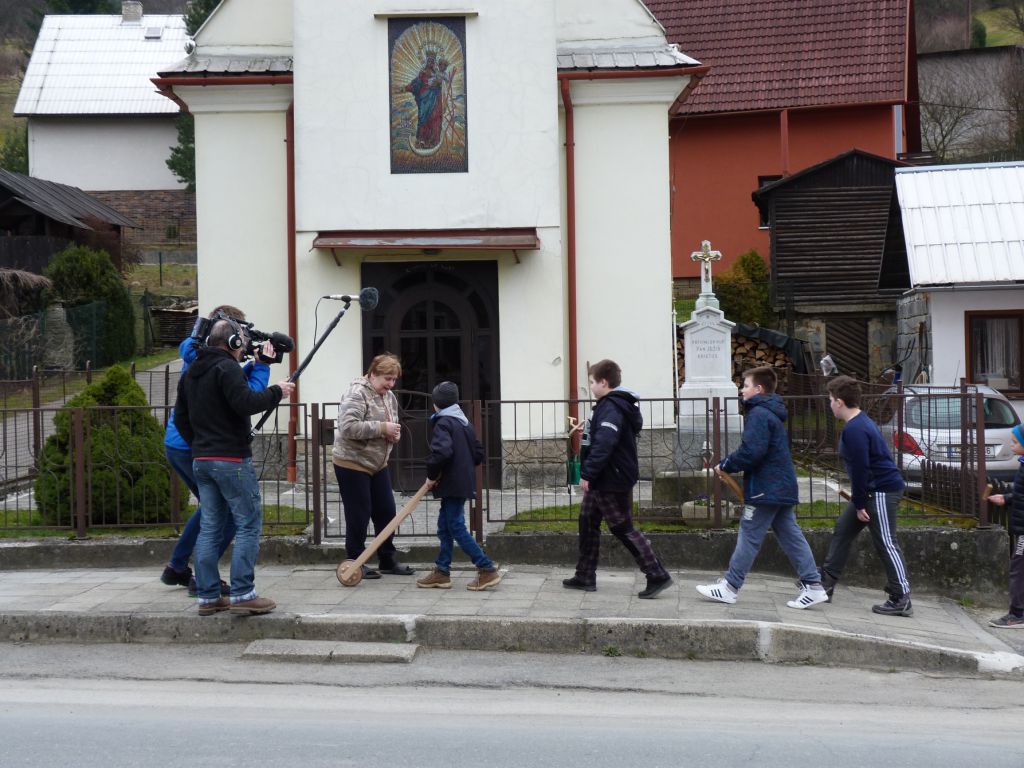 Tradiční obchůzka ogarů s trakaři, klabačkami a řehtačkami nahrazující zvonění zvonů, které odletěly do Říma. Fotografie z Velkého pátku 25. 3. 2016, kdy ogary natáčela Česká televize pro připravovaný dokument o Držkové.