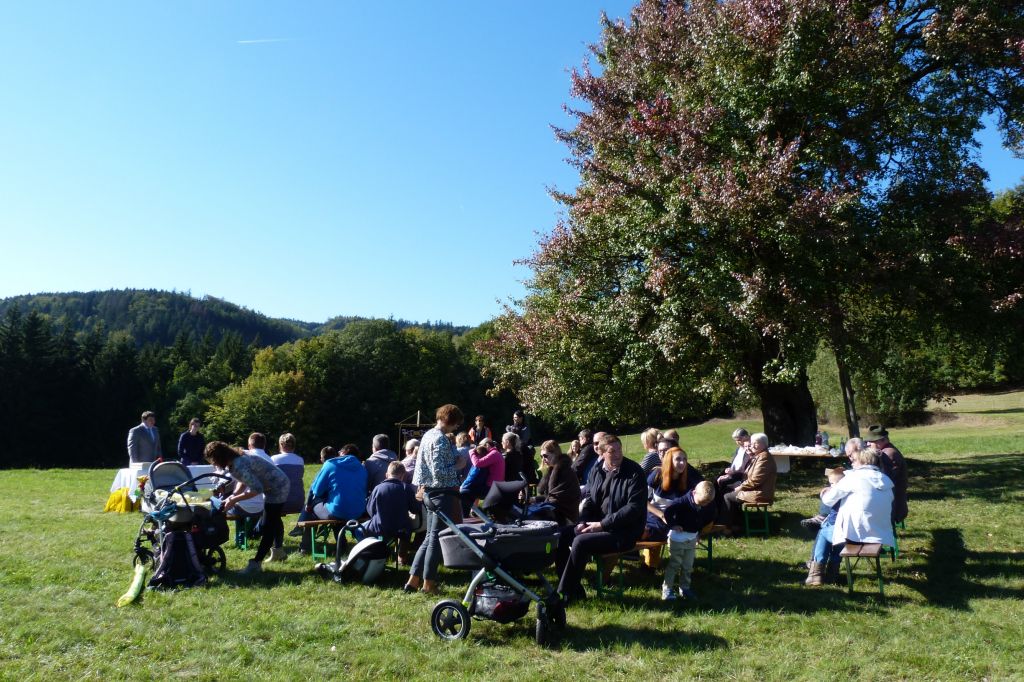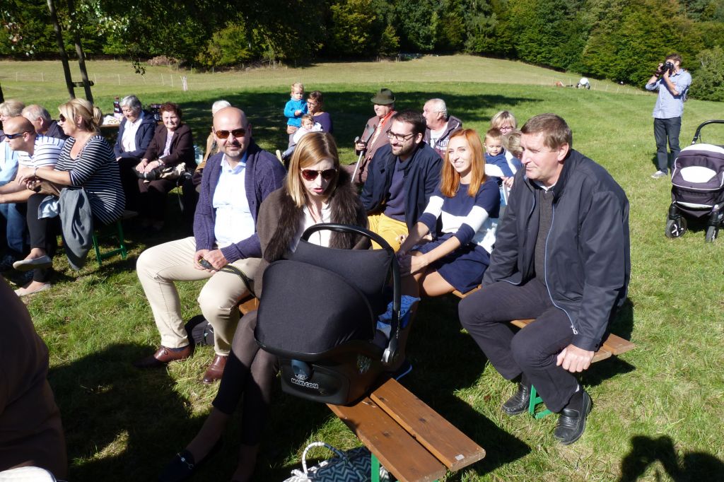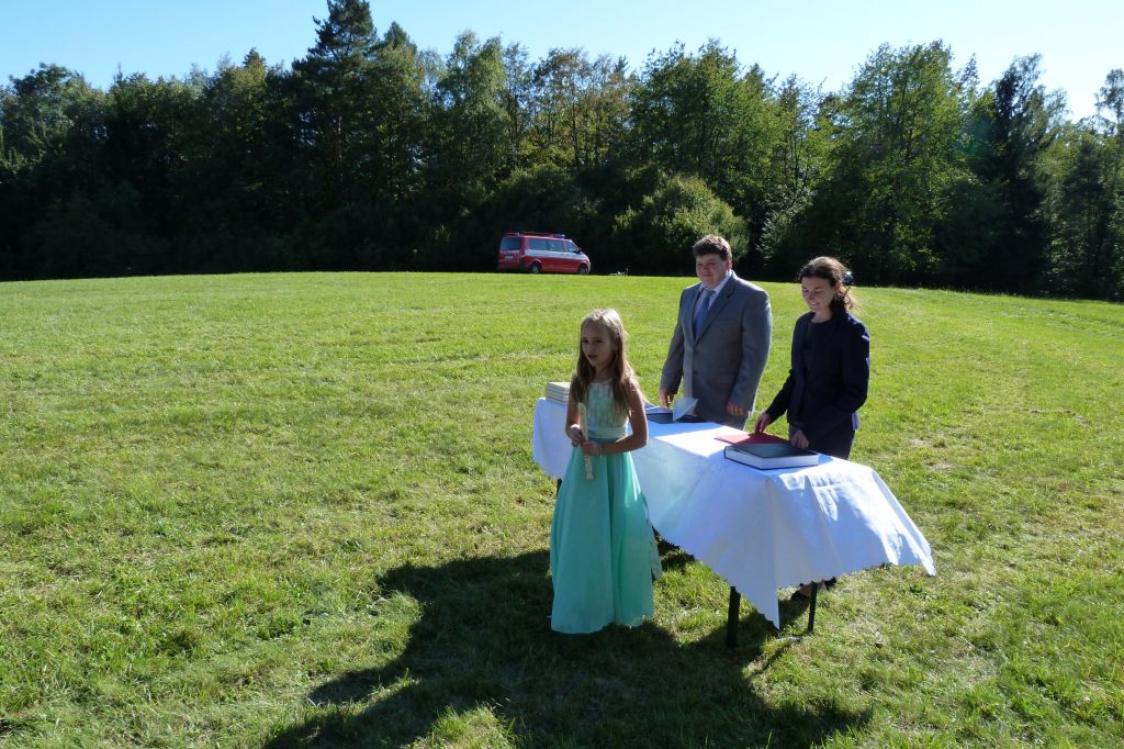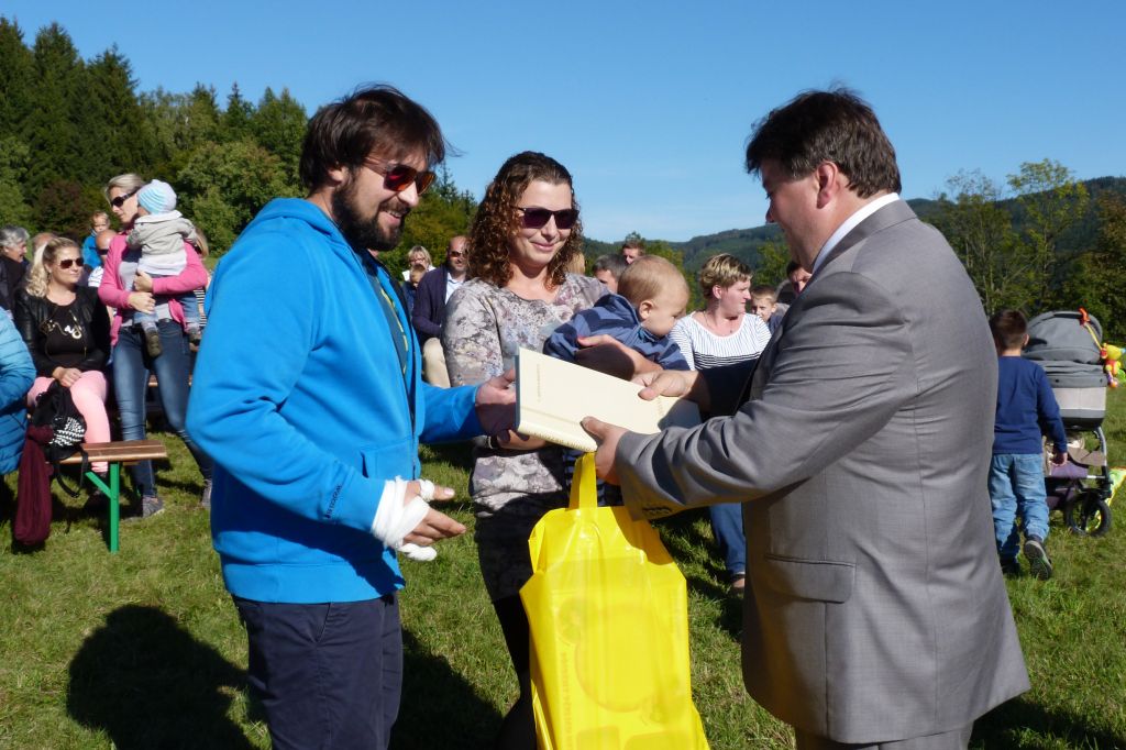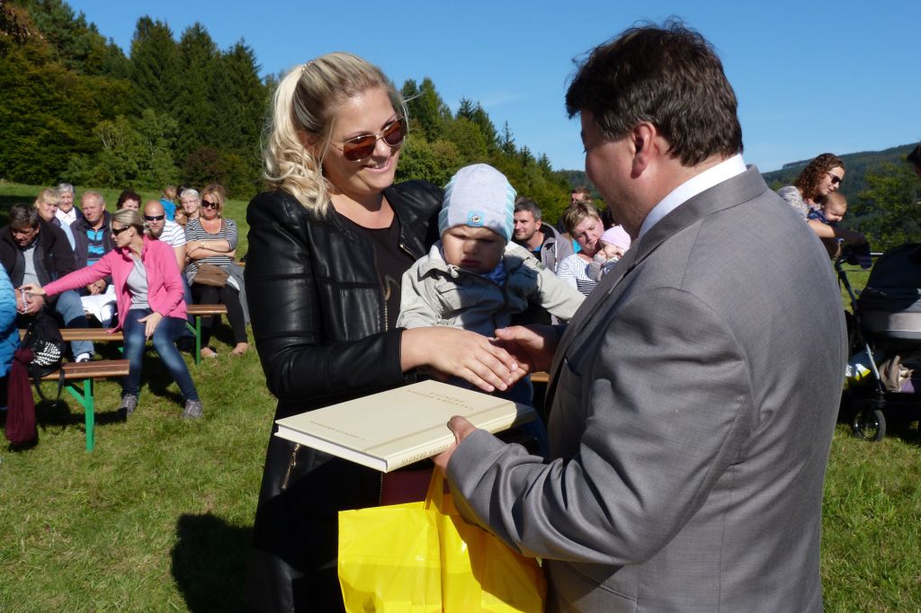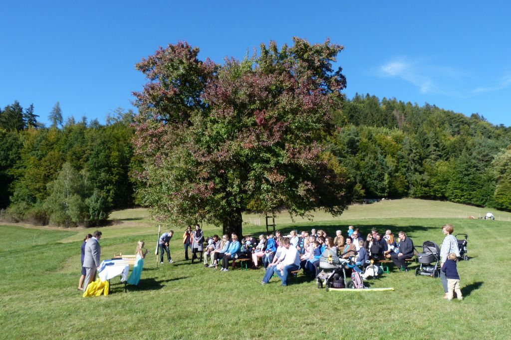 O hodové neděli 30. 9. 2018 proběhlo v Držkové v pořadí již čtvrté vítání občánků. Slavnost se uskutečnila po předchozích úspěších opět v krásné přírodě pod korunou Fojtovy hrušky pod Skalama. Počasí celé akci mimořádně přálo, svítilo sluníčko, listy stromů hrály všemi barvami a sama hruška se již pomalu zbarvovala do svého rudého kabátu. Uvítat se podařilo pět nových občánků, kterým byl v uplynulém roce zastupitelstvem, na základě jejich písemné žádosti, schválen příspěvek na narozené dítě. Slovem slavnost jako obyčejně provázela Petra Marušáková, kulturní program (básnička, písnička a hra na flétnu) si přichystala Emička Roháčková. Po slavnostním proslovu pana starosty se rodiče podepsali do pamětní knihy obce a pro děti obdrželi knihu Valašská dědina Držková s věnováním, sadu dětského nádobí a domovský list obce Držkové. Na konec proběhlo ještě fotografování dětí v obecní vyřezávané kolébce s rodiči a také s ostatními rodinnými příslušníky. Akce v přírodě navíc za krásného počasí se opět setkala s mimořádným úspěchem. Pevně věříme, že nám budou občánci v Držkové i nadále přibývat a že obdobnou akci budeme moci uspořádat i v následujících letech. Ještě jednou přejeme našim nejmenším Držkovjánkům, aby šťastně vykročili do života, který na ně teprve čeká. Nejen jim, ale též rodičům a sourozencům přejeme pevné zdraví, hodně štěstí a spokojenosti.