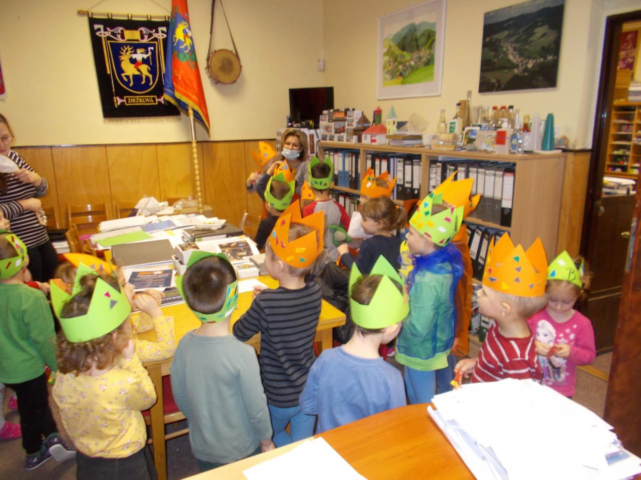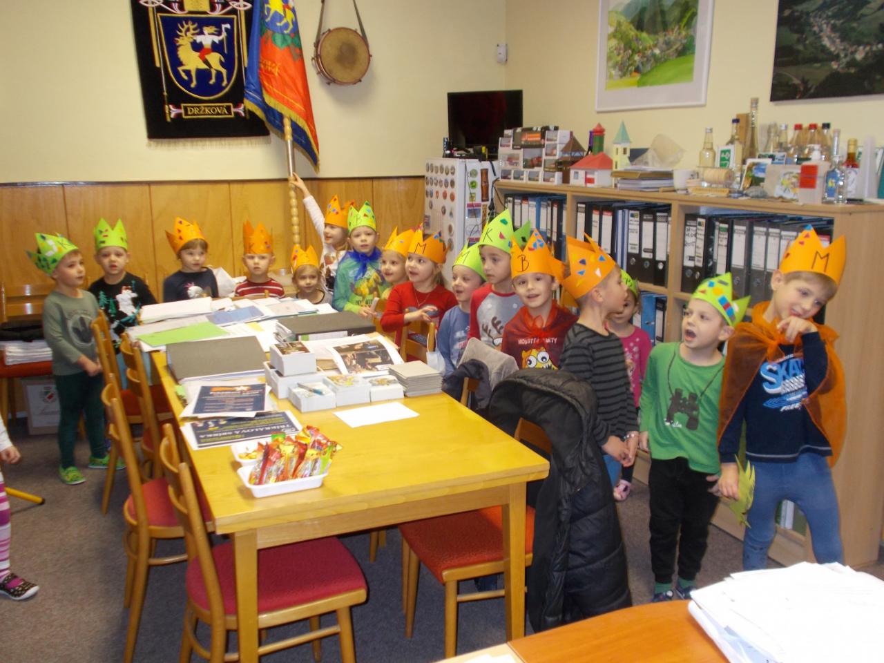 Tříkrálové koledování dětí z MŠ Držková ve středu 6. ledna 2021.