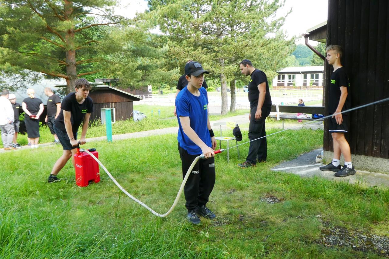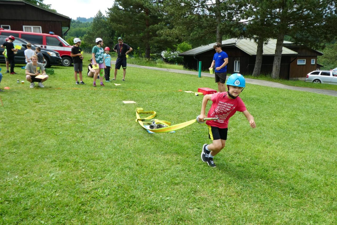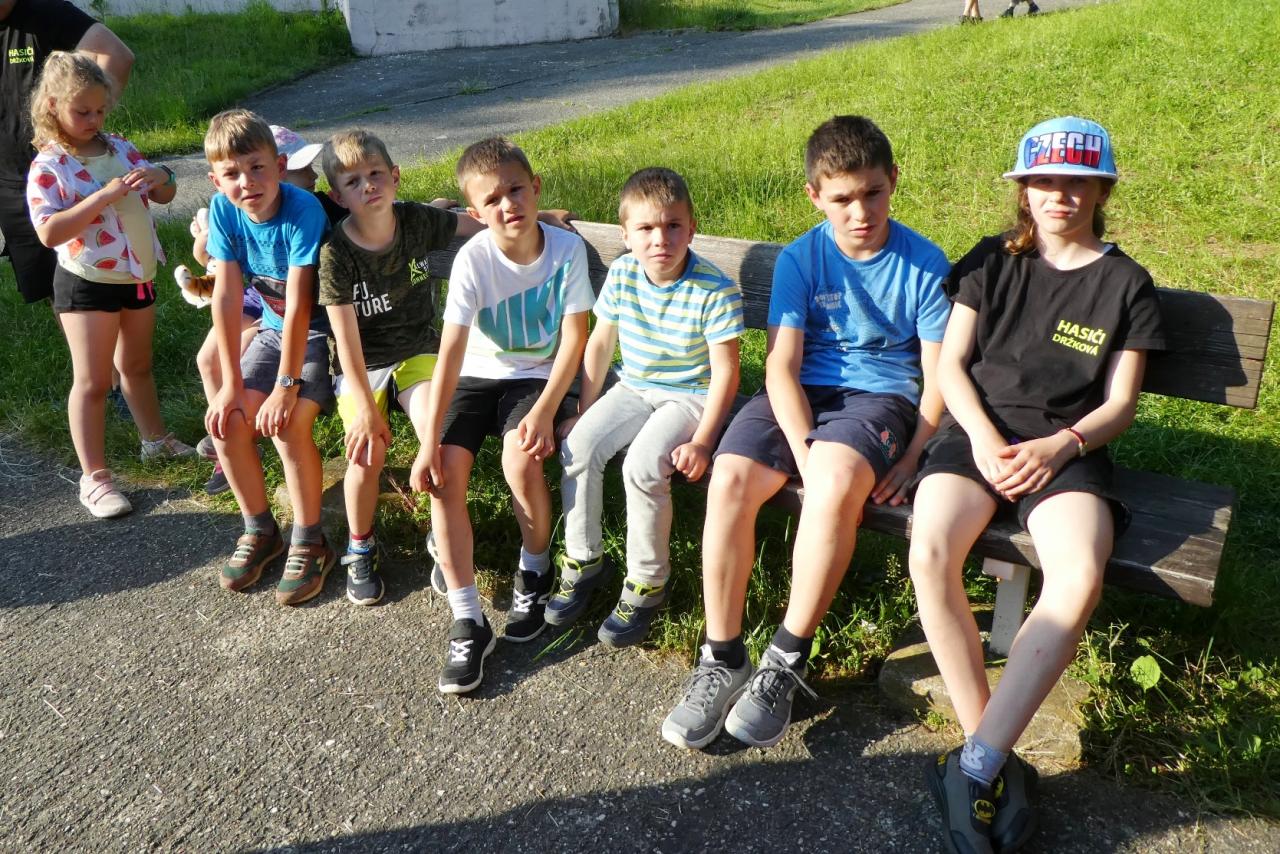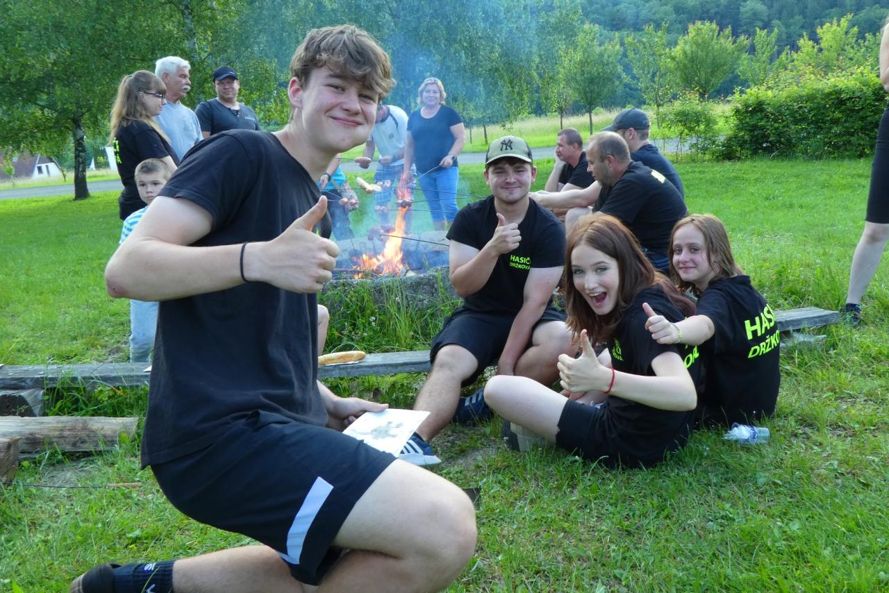 Od pátku 16. do neděle 18. června 2023 jsme se s našimi mladými svěřenci zúčastnili každoročního Soustředění mladých hasičů sborů IX. okrsku Držková. Ten se uskutečnil tradičně v rekreačním středisku Revika ve Vizovicích. Také v letošním roce byla účast z držkovského sboru velká - celkem 19 dětí a 8 dospělých vedoucích. Dále byly přítomni mladí hasiči ze sborů Kašava, Vlčková, Lukov, Fryšták, Lukoveček a Hrobice. V pátek po nástupu následovalo oblíbené opékání špekáčků. V pátek večer se dětem příliš nechtělo do peřin, i když věděli, že budíček bude hasičskou sirénou již v 7:00 hodin. Druhý den pak následovala rozcvička a snídaně. Hlavním bodem dopoledního programu byla soutěž TFA Junior, kterou pro všechny připravil náš sbor. Děti si na dvou drahách mohly vyzkoušet celkem 10 různých disciplín. Kromě TFA byly připraveny ještě další tři stanoviště (střelba z vzduchovky, stříkání ze džberovky a poznávání hasičských značek). Po obědě byl volný program, který většina sborů využila k návštěvě kozí farmy a ochutnání kozí zmrzliny. V 16:00 hodin pak přijeli dobrovolní hasiči z Vizovic se svou novou cisternovou Tatrou, kterou si mohli všichni do detailu prohlédnout a také si vyzkoušet stříkání. Sobotní večer byl pak zakončen večeří a stezkou odvahy. V neděli po snídani proběhl nástup a také vyhlášení výsledků ze sobotních závodů TFA. Máme radost, že i držkovským mladým hasičům se velmi dařilo. V kategorii 3-5 let vyhrála 1. místo Adélka Roháčková a ve věkové kategorii 12-14 let vyhrál rovněž 1. místo Matyáš Flám. Po vyhlášení výsledků jsme udělali společnou fotografii, s kamarády z okolních sborů jsme se rozloučili a rozjeli jsme se ke svým domovům. Letošní ročník víkendového soustředění se velmi vydařil a odvezli jsme si domů spoustu společných zážitků.
