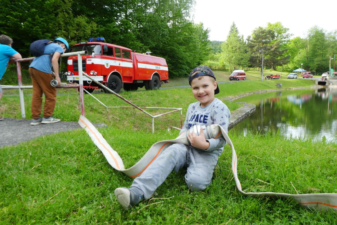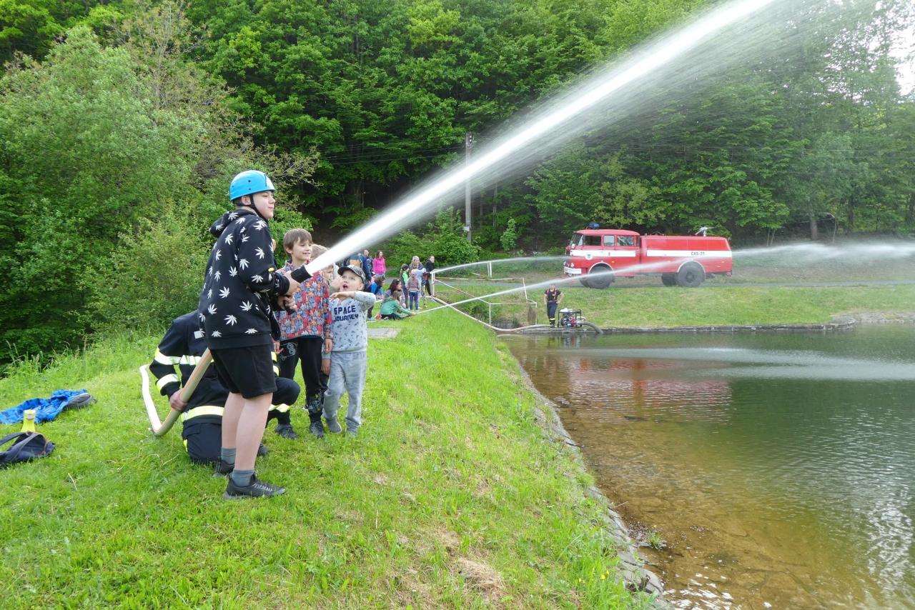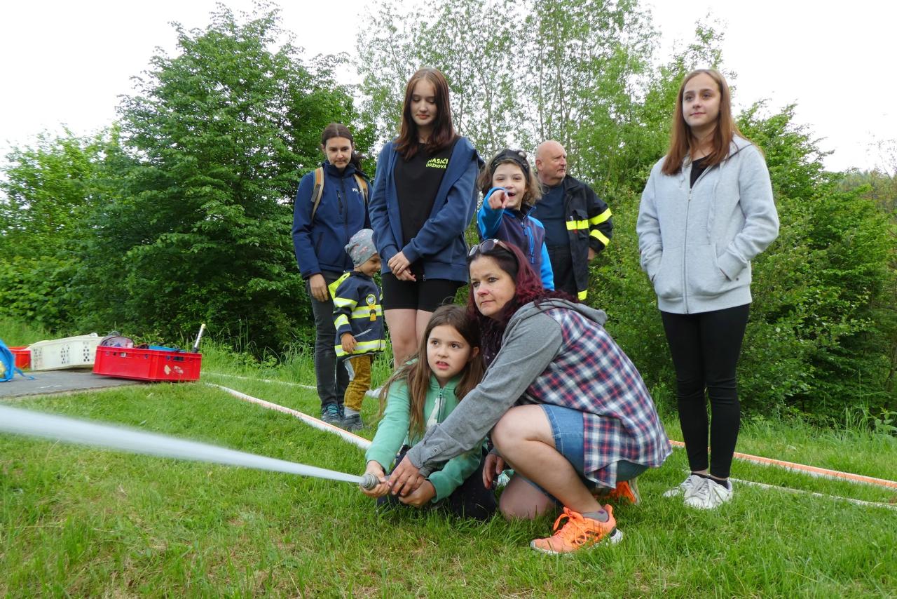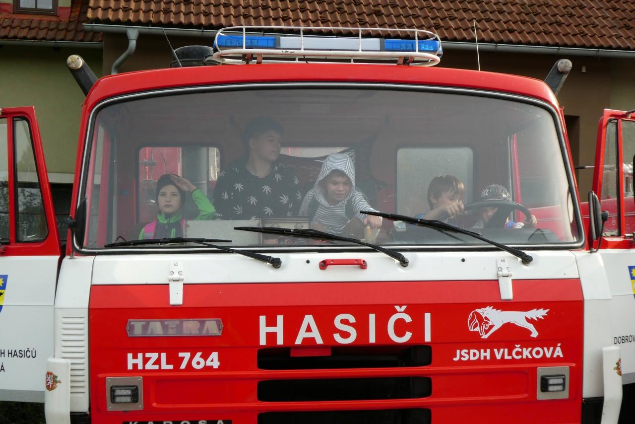 V pátek 10. května 2024 se uskutečnil další kroužek mladých hasičů SDH Držková. Tentokrát jsme měli domluvený zážitkový program u kamarádů hasičů v sousední Vlčkové. Společně jsme kroužek zahájili procházkou, kdy jsme po červené turistické značce ušli dvoukilometrový úsek „přes kopec“ do Vlčkové. U zbrojnice na nás již čekali místní dobrovolní hasiči, aby nám předvedli své zázemí a především techniku. Naši mladí svěřenci si prohlédli historickou čtyřkolovou sundavací ruční stříkačku, která může mít podle odhadů i 170 let, garáž i spolkovou místnost zbrojnice, věž na sušení hadic a hned dva cisternové vozy. Původní CAS 25 na podvozku Škoda 706 RTHP a zcela novou Tatru 815, kterou pro svou zásahovou jednotku před dvěma měsíci zakoupila obec Vlčková. Oba vozy si mohli mladí hasiči podrobné prohlédnout. Následně se všichni vydali k místnímu rybníku – požární nádrži. Část mladých hasičů se na místo svezla i starším cisternovým vozem Škoda. U rybníku bylo dětem nejprve předvedeno použití vodního děla, což si mohl každý také vyzkoušet. Následně jsme si z dovezených hadic, proudnic a zásahového čerpadla z Držkové vybudovali na hrázi rybníku vedení hadic a tři útočné proudy. Mladí hasiči si tak mohli vyzkoušet stříkání vody a použití různých druhů proudnic (historické i moderní) a různé druhy proudů hasební vody. Celá akce se velmi vydařila a domů si děti odnášely množství zážitků. Velké poděkování patří dobrovolným hasičům z Vlčkové za jejich čas a ochotu! Děkujeme!