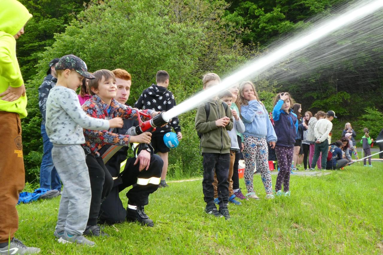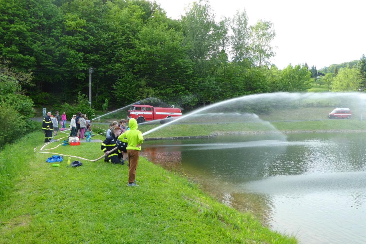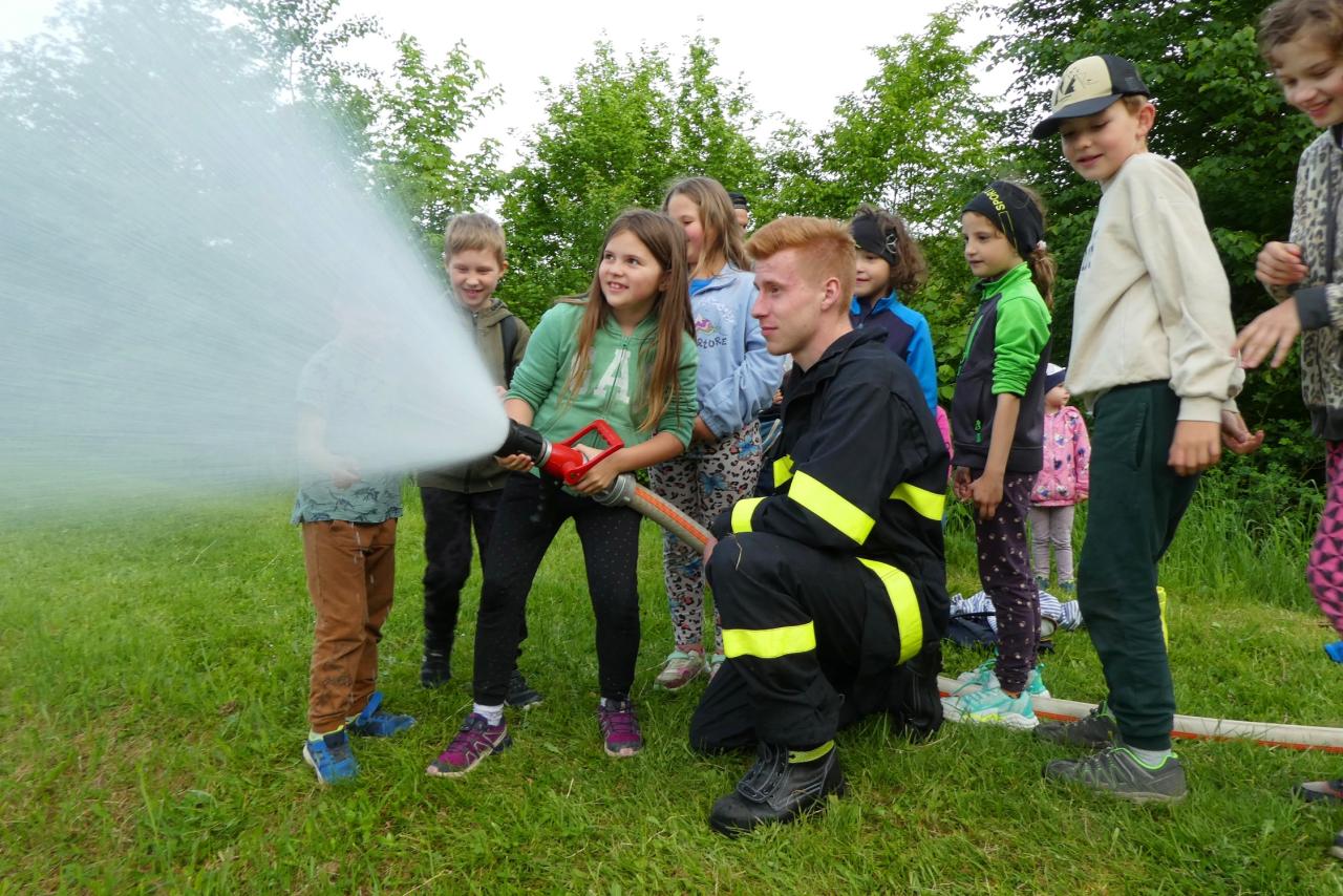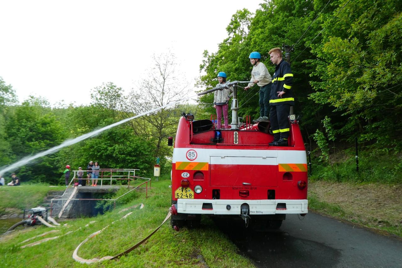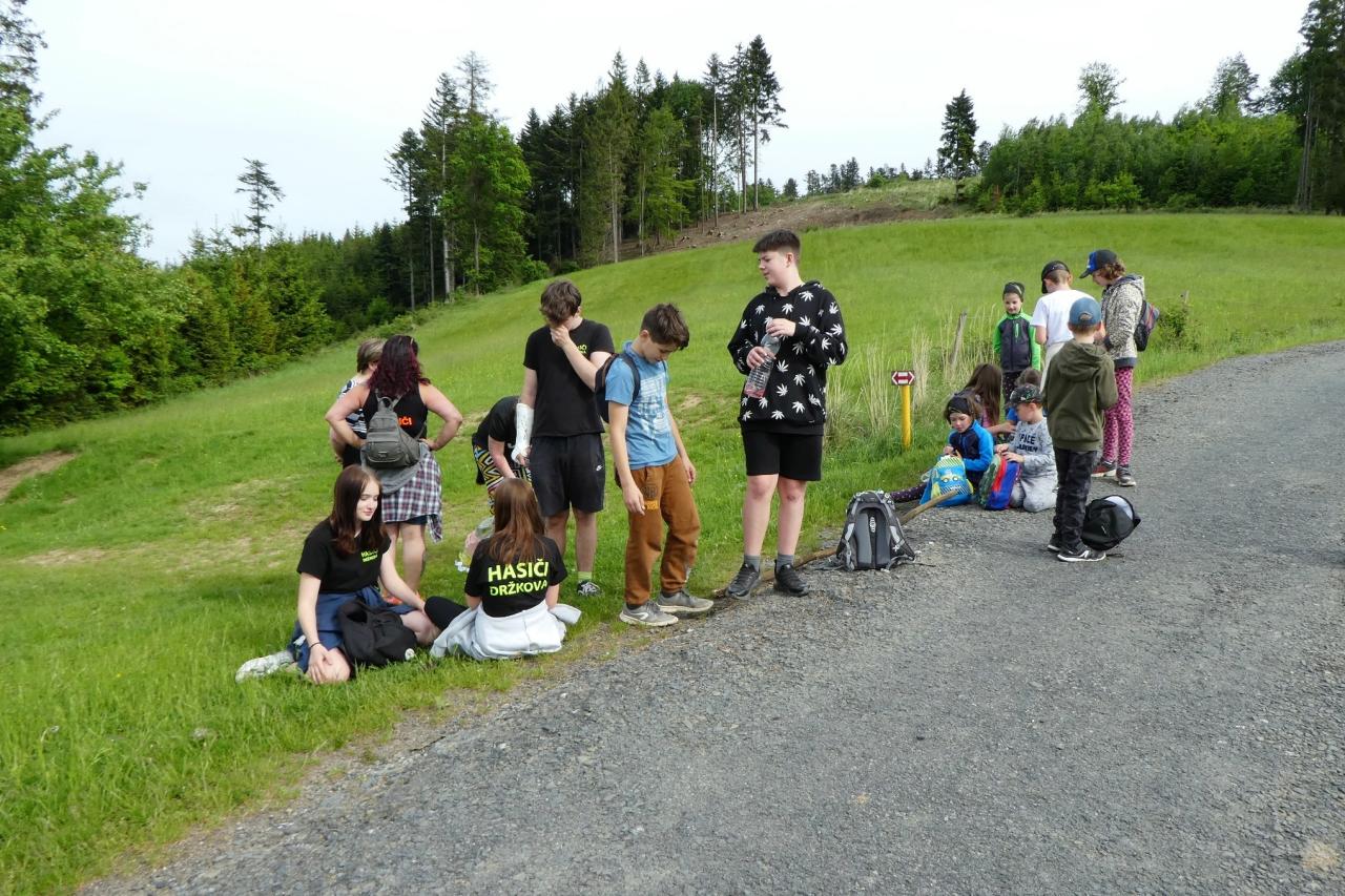 V pátek 10. května 2024 se uskutečnil další kroužek mladých hasičů SDH Držková. Tentokrát jsme měli domluvený zážitkový program u kamarádů hasičů v sousední Vlčkové. Společně jsme kroužek zahájili procházkou, kdy jsme po červené turistické značce ušli dvoukilometrový úsek „přes kopec“ do Vlčkové. U zbrojnice na nás již čekali místní dobrovolní hasiči, aby nám předvedli své zázemí a především techniku. Naši mladí svěřenci si prohlédli historickou čtyřkolovou sundavací ruční stříkačku, která může mít podle odhadů i 170 let, garáž i spolkovou místnost zbrojnice, věž na sušení hadic a hned dva cisternové vozy. Původní CAS 25 na podvozku Škoda 706 RTHP a zcela novou Tatru 815, kterou pro svou zásahovou jednotku před dvěma měsíci zakoupila obec Vlčková. Oba vozy si mohli mladí hasiči podrobné prohlédnout. Následně se všichni vydali k místnímu rybníku – požární nádrži. Část mladých hasičů se na místo svezla i starším cisternovým vozem Škoda. U rybníku bylo dětem nejprve předvedeno použití vodního děla, což si mohl každý také vyzkoušet. Následně jsme si z dovezených hadic, proudnic a zásahového čerpadla z Držkové vybudovali na hrázi rybníku vedení hadic a tři útočné proudy. Mladí hasiči si tak mohli vyzkoušet stříkání vody a použití různých druhů proudnic (historické i moderní) a různé druhy proudů hasební vody. Celá akce se velmi vydařila a domů si děti odnášely množství zážitků. Velké poděkování patří dobrovolným hasičům z Vlčkové za jejich čas a ochotu! Děkujeme!