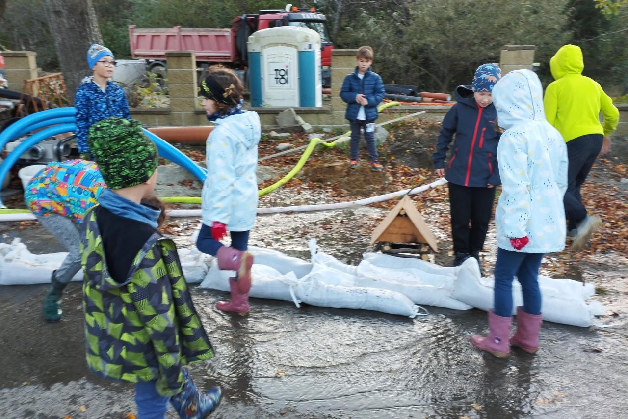 V pátek 18. října 2024 se uskutečnil další kroužek mladých hasičů SDH Držková. Protože naši obec v letošním roce hned dvakrát potrápily povodně, rozhodli jsme se s dětmi udělat kroužek právě s touto tématikou. Program byl zahájen teorií – vedoucí Petra Marušáková děti seznámila s tím, jaké druhy povodní jsou, jaké máme protipovodňová opatření, co jsou povodňové stupně, jakým způsobem se povodňové stavy vyhlašují, co dělat v případě povodní a jak si sbalit evakuační zavazadlo. Formou fotek pak byly děti seznámeny s nejničivějšími povodněmi, které za uplynulých 30 let postihly naši republiku. Následovala praktická ukázka, jak vypadají pytle na písek a jak se plní. Děti si také několik pytlů pískem naplnit vyzkoušely. Následně z pytlů postavily protipovodňovou hráz, jejíž vlastnosti jsme hned odzkoušeli vodou z čerpadla. Na závěr jsme děti zavezli do Ráztok, kde jsme si na ostění mostu ukázali hladinoměr stupňů povodňové aktivity na vodním toku Dřevnice.