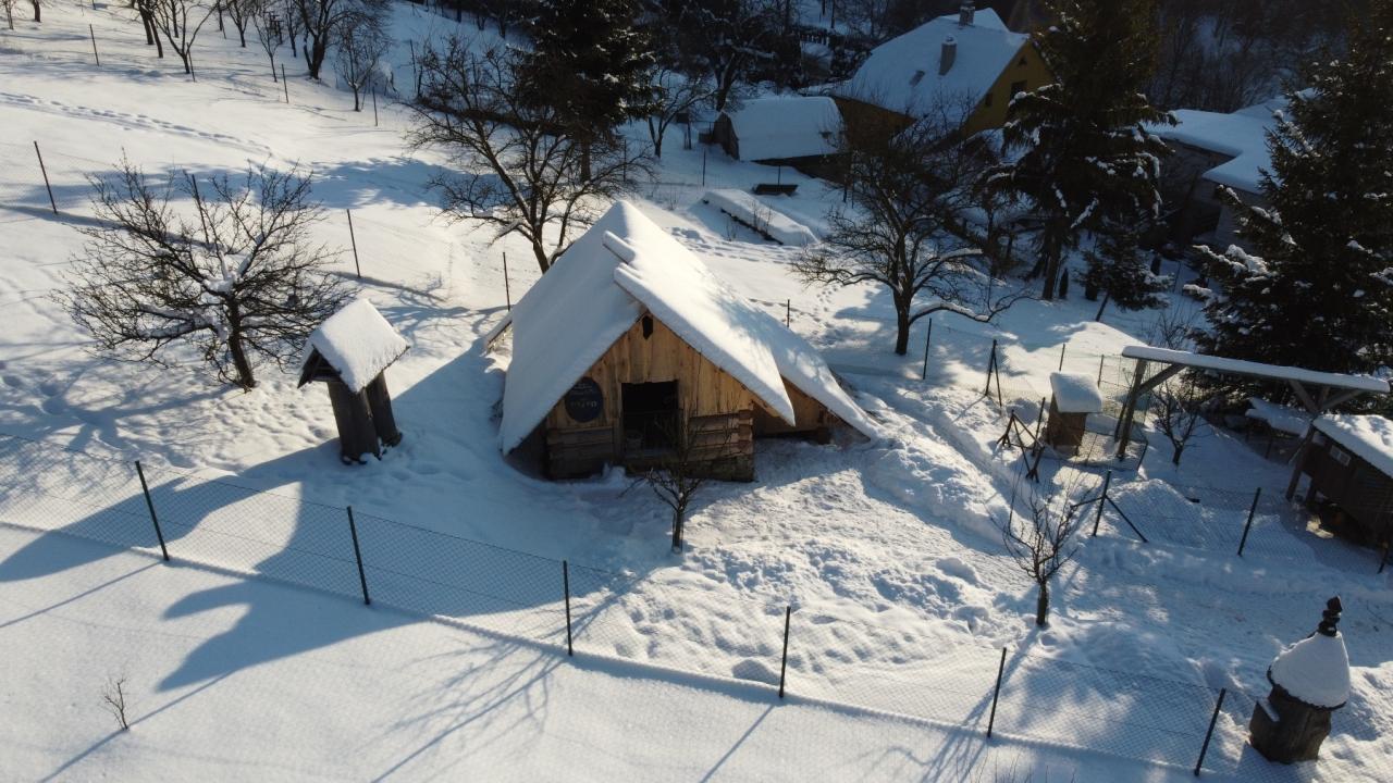 Muzeum dřevěného porculánu v Držkové z ptačí perspektivy.