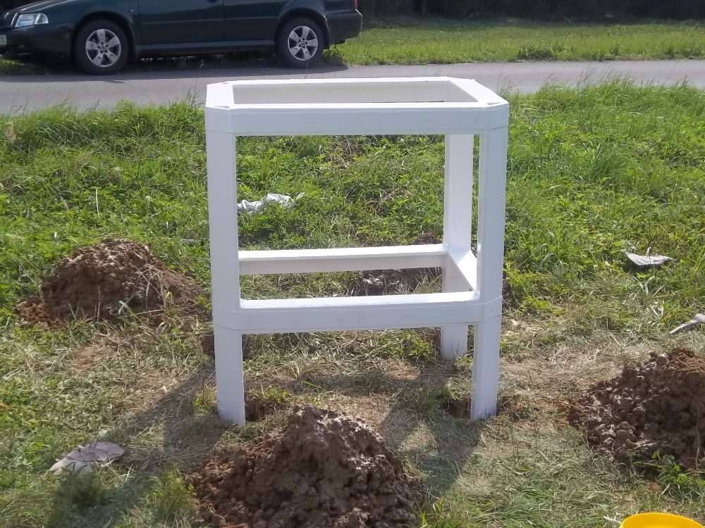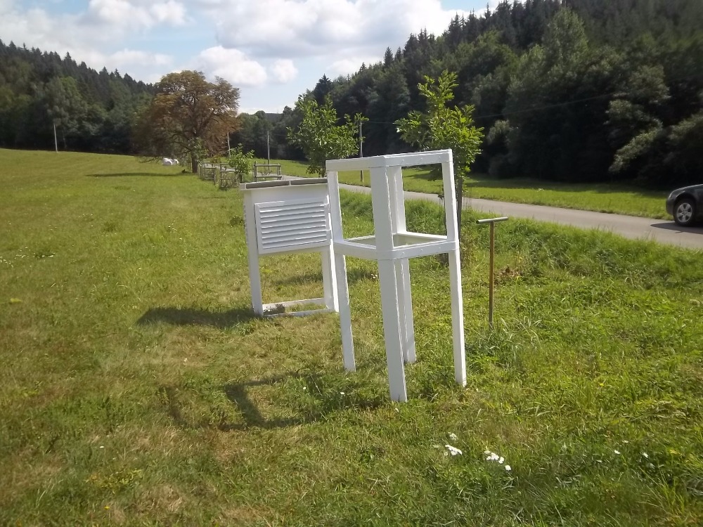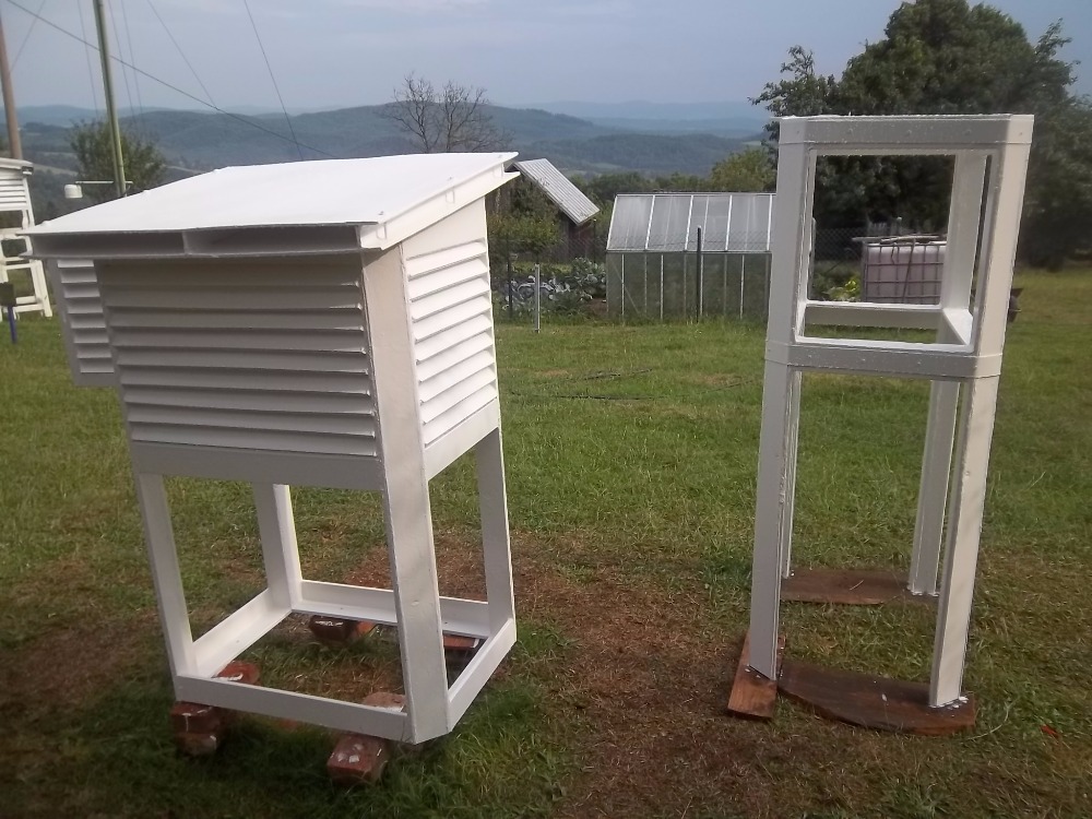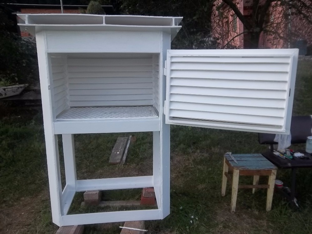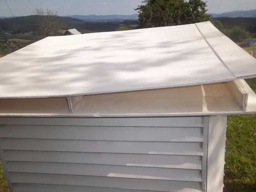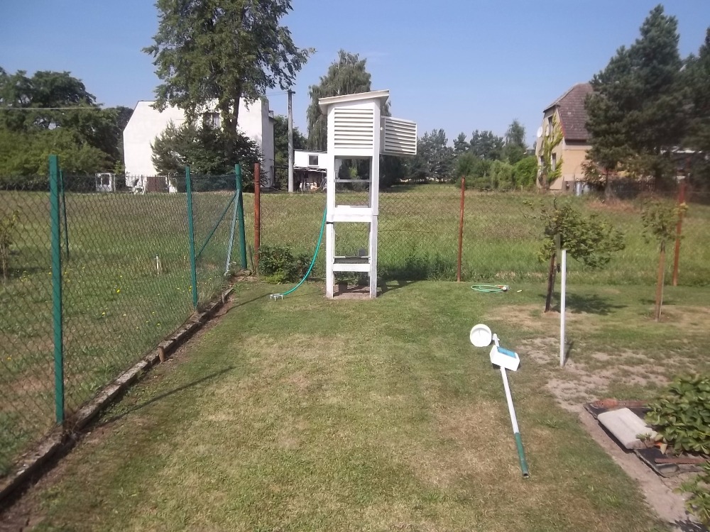 V týdnu od 28. 8. do 3. 9. došlo tedy k instalaci budky, která postupně nahradí současné měření v Hutích. Instalace vyžadovala vyvrtat ručním vrtákem díry do hloubky 80 cm. Již ve 30 cm se vrtání stávalo složitějším a složitějším. Ke slovu se odstalo několik kýblů vody z Dřevnice, které napomohly další vrtání až do 75 cm. Po osazení stojanu byla přišroubována budka, do ní dány přístroje na měření vlhkosti a teploty vzduchu. Na budku byl přimontován i radiační štít pro měření teploty vzduchu ve výšce 2 m nad zemí a taktéž čidlo pro měření přízemní teploty v 5 cm nad zemí. Aktuálně chybí v budce ještě držák na teploměry. Dále bude třeba sehnat schůdky, které jsou nedílnou součástí budky a pro hladké měření a odečet teploty nezbytné. Prosíme tedy, zda by se nenašel šikovný stolař a schůdky nevyrobil. Držák bude snad do 2 měsíců k dispozici a osazen v budce. Zároveň byla budka oplocena ohradníkem proti pohybu zvěři a přidělána cedule s popisem. Budka se nachází přímo u cesty a mnoho lidí bude zvědavých, co že to vlastně na louce stojí. Již při instalaci s kolegou ze stanice z Borkovic u Veselí nad Lužnicí jsme byli pozorováni místním obyvatelem dalekohledem. Poděkování patří především panu Tomáši Dušákovi za poskytnutí budky, jež je stará odhadem 25 – 30 let, dále Lesům ČR za možnost umístit budku a také panu Petru Dočkalovi, který se o místní louku stará a svolil umístit budku do dané lokality. Před instalací budky musela projít nejen samotná, ale i stojan, rekonstrukcí. Stojan byl rozpadlý. Navíc oba tyto díly jsou vyrobeny z polypropylenu, což je plast velice odolný proti povětrnostním vlivům, UV a prakticky se nedá slepit. Jednotlivé části jsou svařovány. Stojan byl na dva kusy a nastal problém s tím, jak jej dát dohromady.