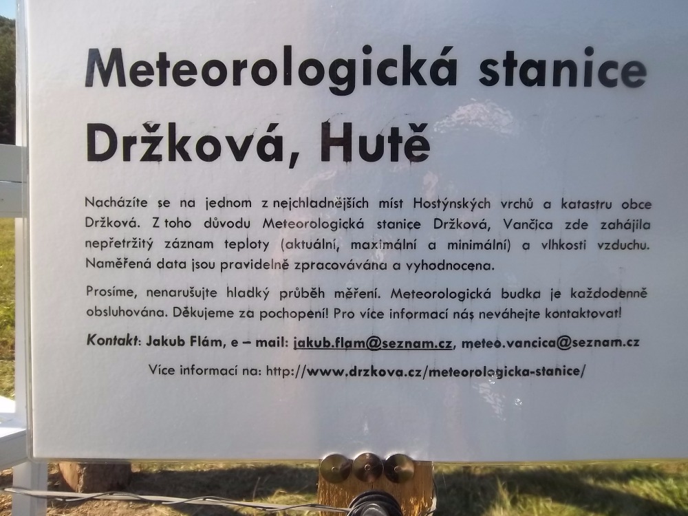 Během měsíce července a srpna probíhal průzkum lokalit s cílem umístit meteorologickou budku, protože měření teploty vzduchu v huťských ráztokách je sice zajímavé, ale není reprezentativní. Současné měření v Hutích probíhá v radiačním štítu nad Dřevnicí v okolí lesního porostu. Vzhledem k tomu, že prostředí, v němž měření probíhá je nestandardní a mýtina postupně zarůstá, bylo rozhodnuto o změně lokality pro záznam teplot v Hutích. Nebylo vůbec jednoduché najít vhodné místo pro umístění budky. Naskýtalo se celkem šest míst. Každé místo bylo něčím zajímavé a mělo své výhody a nevýhody. Dvě z nich byly velmi brzy zamítnuty, protože pro standardní objektivní hodnoty je třeba místo takové, aby nebylo ovlivněno zástavbou (v Hutích nehrozí), lesním porostem. Tato místa byla vhodná pro záznam nižších teplot, avšak pro standardní záznam maximální teploty vzduchu během dne nevyhovující. Především v zimě by slunce pravděpodobně svítilo ani ne 1 hodinu. Budka je umístěna především kvůli chladným ránům, avšak záznam maximální teploty vzduchu je taktéž důležitý.
