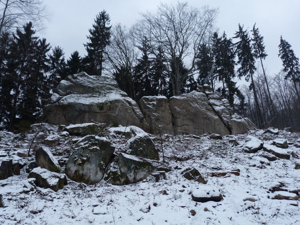 Když pokračujeme dolů směrem ze Zadních skal přes Lamaniska Na Německé, najednou se nám z hustého lesa otevře výhled na protější hlavní hřeben Kotárů. A právě na kopci pod hřebenem ční uprostřed lesa jako maják špičaté skalisko. Pokud bychom prošli údolím a opět vystoupali na kopec, přišli bychom právě až k Dřevnické skalce. Kromě samotné skalky tu nalezneme ještě několik dalších menších, či větších balvanů.