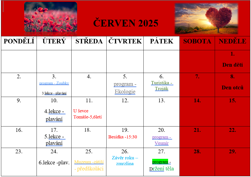 Akce pro děti v MŠ v měsíci červnu 2025.