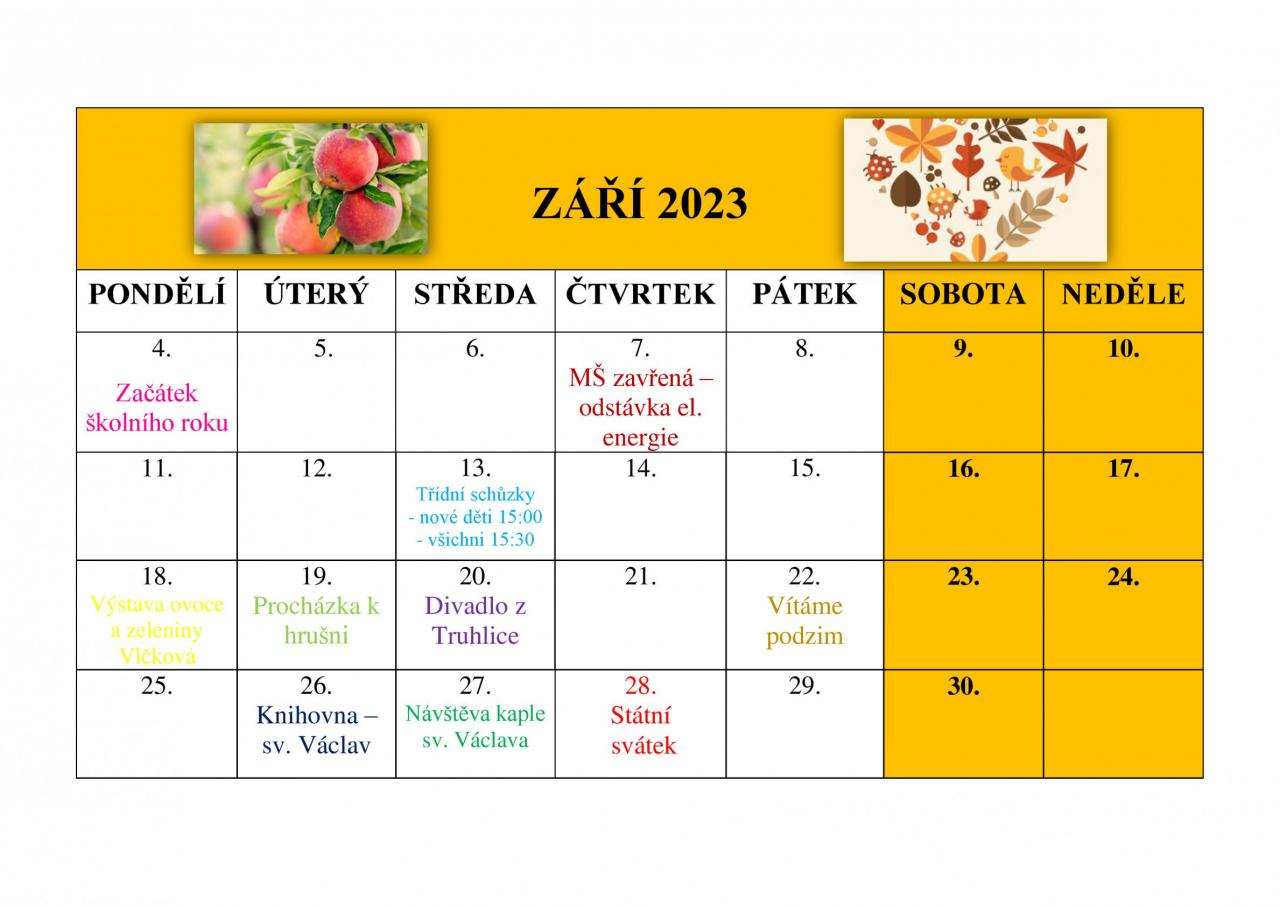 Akce pro děti v MŠ v měsíci září 2023.