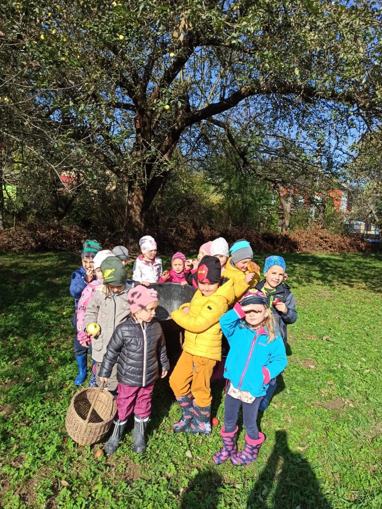 Sběr jablíček na obecní zahradě