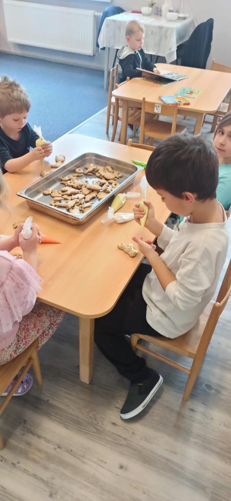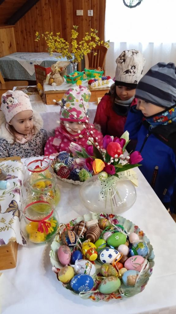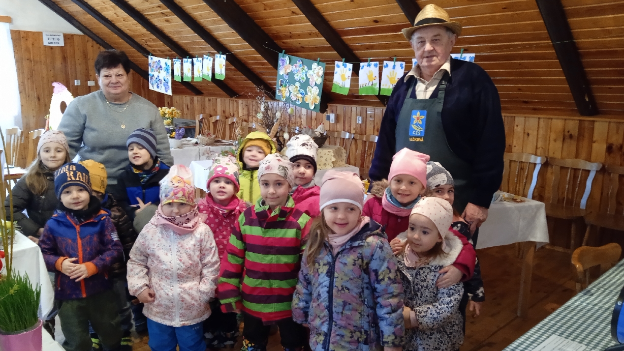 Návštěva salaše u Dočkalů, knihovna Držková, pečení velikonočních perníčků s paní Čadanovou, Malá technická univerzita - malý vodohospodář, náslech předškoláku v 1. třídě - Těšíme se do školy, velikonoční výstava Vlčková.