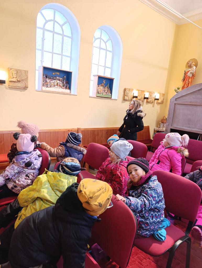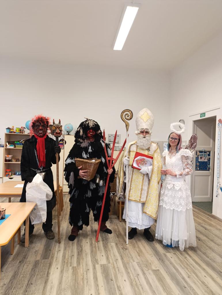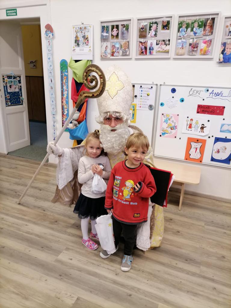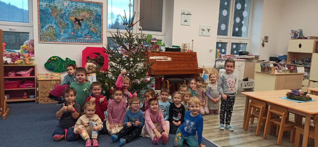 Prosinec byl plný radosti, očekávání a vánočního kouzla. Navštívil nás Mikuláš, anděl a čert, kteří hodným dětem přinesli nadílku a malým zlobivcům pytel brambor a uhlíků. Společně jsme psali dopisy Ježíškovi a vydali se podívat do kapličky na výstavu betlémů. Děti zazářily na vánoční besídce a předškoláci si užili návštěvu knihovny ve Zlíně. Nechybělo ani zdobení stromečku, po kterém nás čekalo překvapení v podobě dárků od Ježíška. Upekli jsme si voňavé perníčky a na závěr jsme společně koledovali po obci. Celý měsíc jsme završili krásnou pohádkou „Z babiččina svetru“. Prosinec nám přinesl spoustu nezapomenutelných chvil.