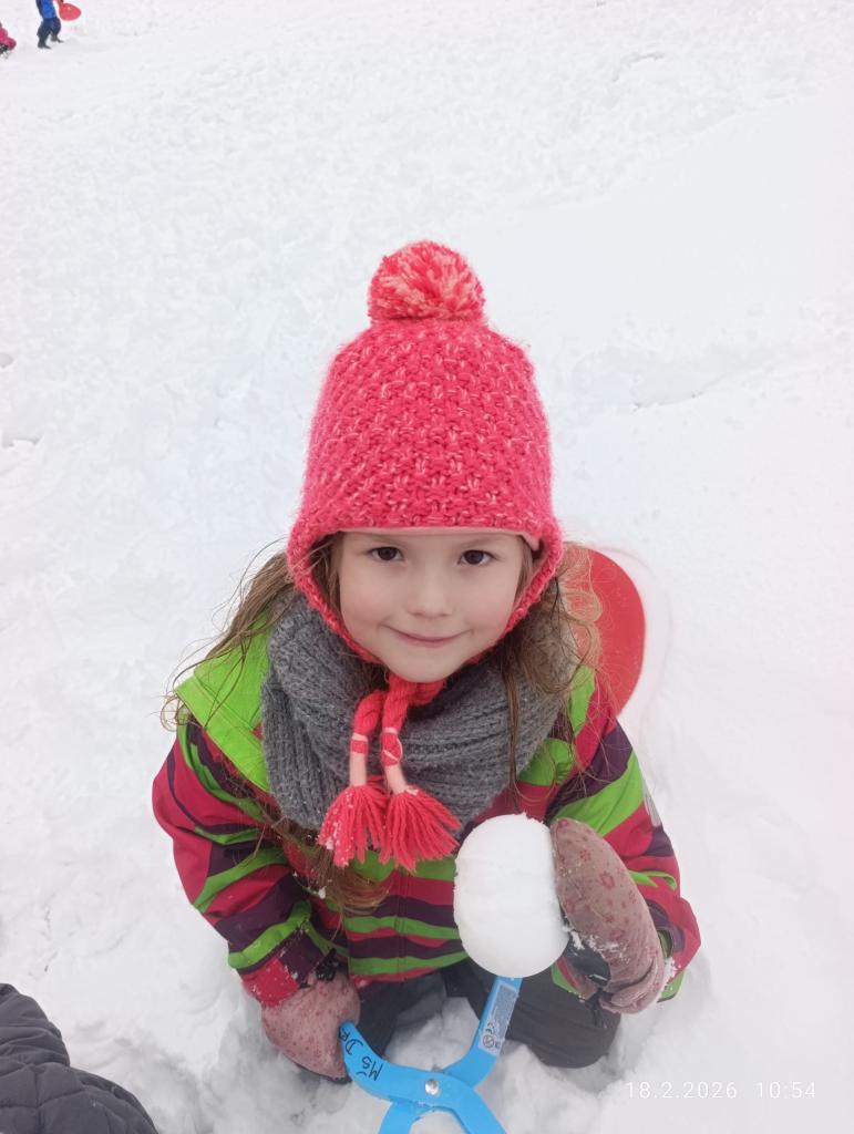 Děti si užívaly zimní počasí plnými doušky. Na školní zahradě si hrály na sněhu, tvořily sněhové koule a radovaly se ze slunečného zimního dne. Pobyt venku přinesl nejen spoustu pohybu, ale i radost z krásného zimního počasí.